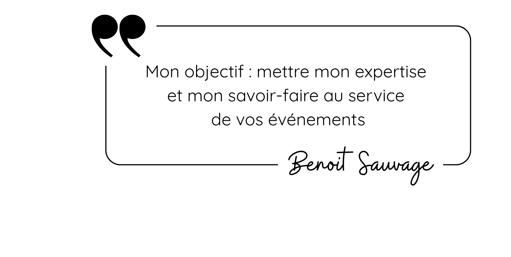 De chef de rang à maître d’hôtel, il devient directeur de salle au sein du Val d’Evre Traiteur (Ancenis). À la suite de la reprise et de la réorientation du Val d’Evre, Benoît décide de faire un bond dans sa carrière, ne souhaitant pas laisser de côté les clients fidèles qu’il a accompagnés pendant des années. Ainsi, après avoir cumulé 20 ans d’expérience dans le secteur de l’événementiel, dont 15 ans en tant que directeur de salle, son rêve devient réalité.